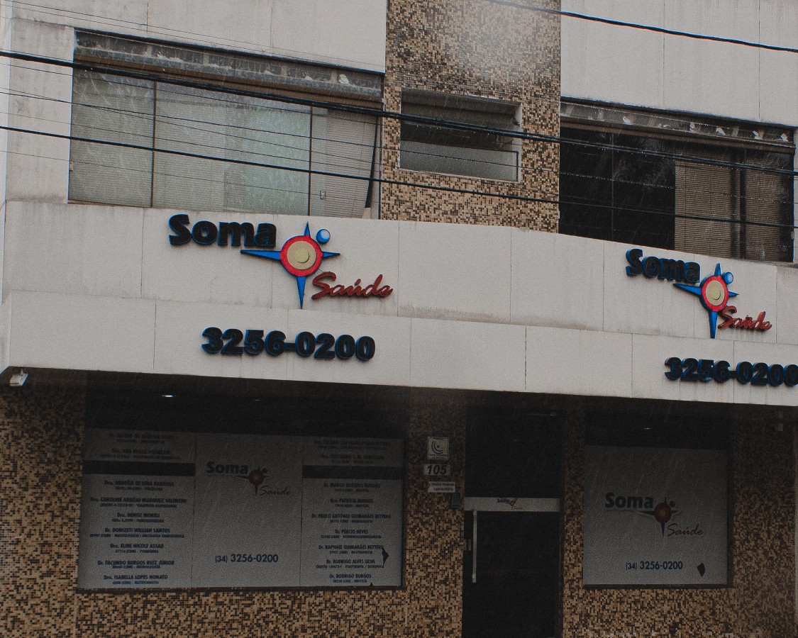 Localizada em uma movimentada avenida de Uberlândia-MG, a Soma Saúde é uma clínica que, há mais de 10 anos, agrega em um mesmo ambiente diversos profissionais de saúde para o seu melhor atendimento, como: mastologia, neurologia, osteopatia, otorrinolaringologia, odontologia, implantodontia, psicologia, psiquiatria e reabilitação neurológica. Além disso, realiza procedimentos e exames. O centro médico especializado conta com um corpo clínico altamente qualificado, com profissionais credenciados...